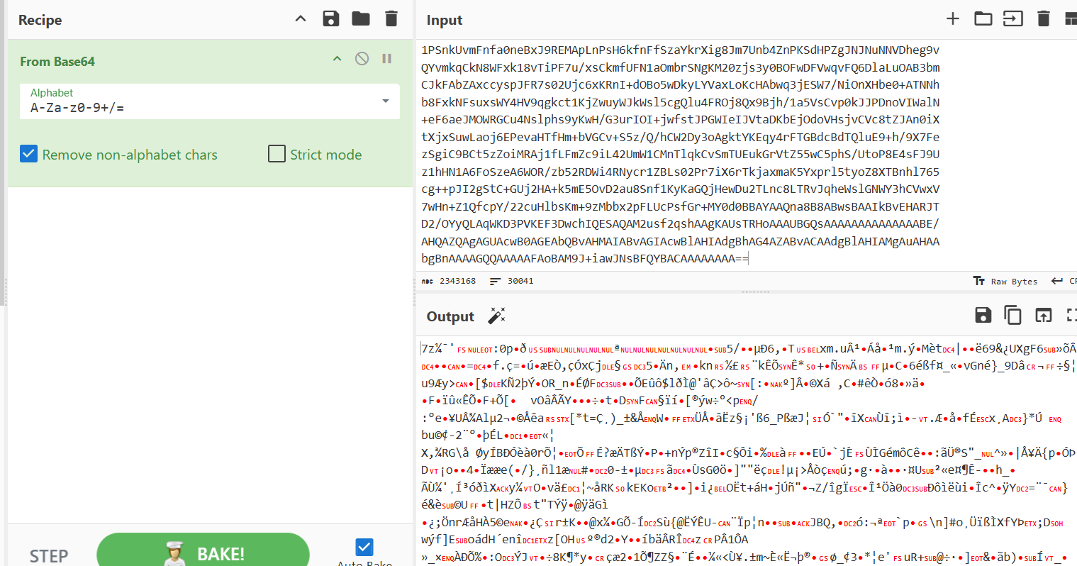 The next file we examined was Coordenadas... cerca muy cerca.eml, which contained a Base64-encoded string. After decoding this string, we discovered that it was a 7zip archive. However, the archive was password-protected.