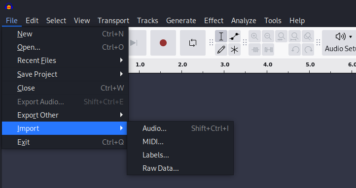 After extracting the raw audio data, I tried to open the audio.raw file in an audio editing tool to verify its contents. Initially, when importing the file as a regular audio file, it didn't work, and the tool flagged it as an incorrect format.