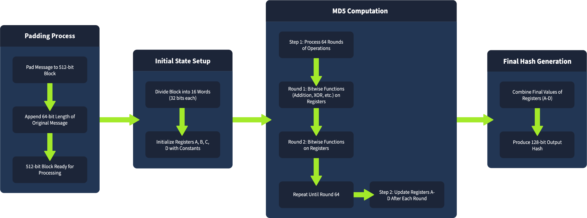 Understanding how hash functions process data internally is crucial for comprehending Length Extension Attacks. Hash functions like MD5, SHA-1, and SHA-256 process data in fixed-size blocks rather than all at once.
