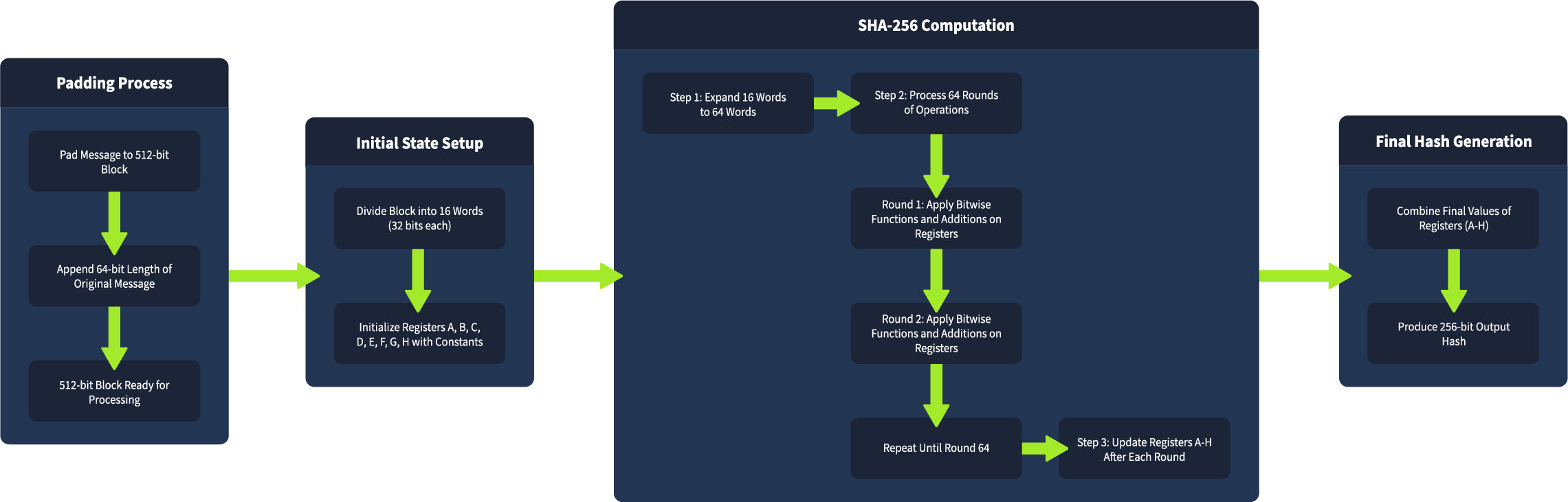 - >Data Alignment: Ensures data fits the exact block size (512 bits for SHA-256)