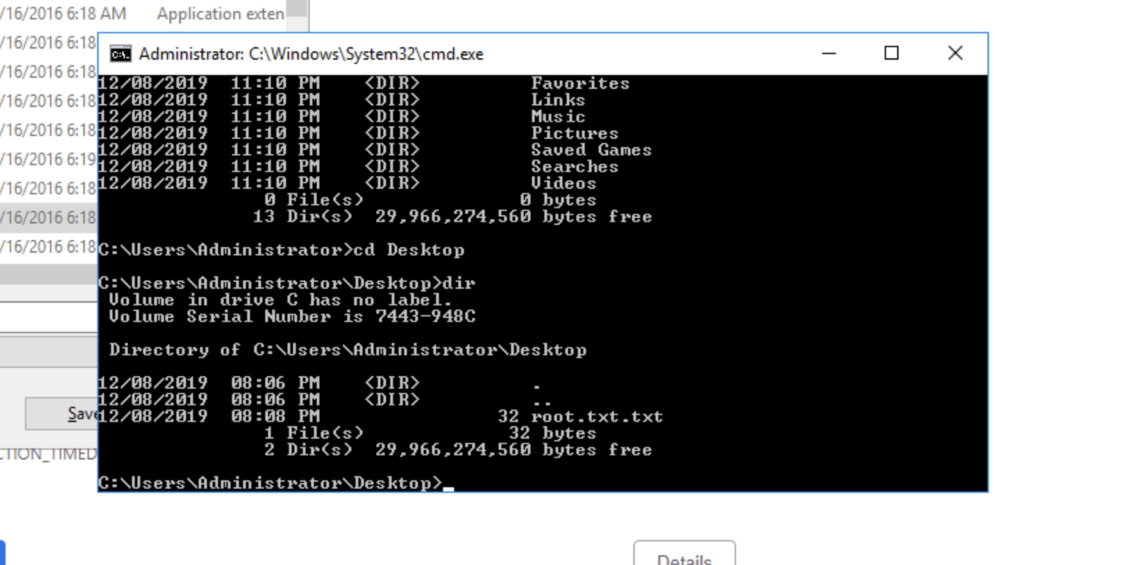 Now, head over to C:\Users\Administrator\Desktop and we can see the root.txt file present there.