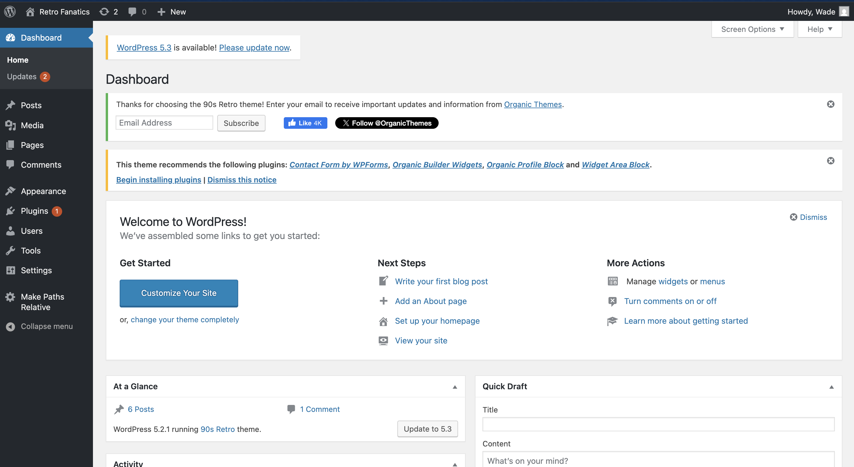 So, now let's try the credentials wade:<REDACTED> on the /wp-admin.php endpoint and see if it works.